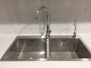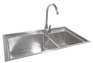 Chậu 2 hố cân GS304-8245CC GRÖß: được làm từ chất liệu inox SUS304, bộ lọc rác & rổ ráo nước inox SUS304, xi phông nhựa PP cao cấp. Độ dày 1+3.5mm, chế tạo bán thủ công, không tiếp xúc trực tiếp với axit, kích thước cắt đá 770*400, kiểu lắp dương.