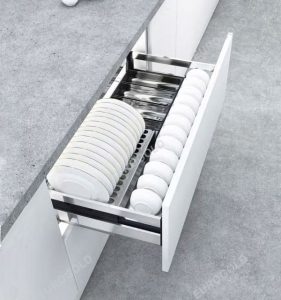 Giá bát di động có thể nói là một cuộc cách mạng thực sự trong ngành phụ kiện tủ bếp thông minh. Trái ngược với giá để bát đĩa cố định, Giá để bát đĩa với thiết kế thông minh có thể nâng lên hạ xuống giúp việc bảo quản, úp và lấy bát đĩa trở nên đơn giản hơn bao giờ hết. Ngoài ra, với kiểu dáng thanh thoát, sang trọng, chiếc giá còn được xem như một vật trang trí giúp nâng tầm không gian của căn bếp.