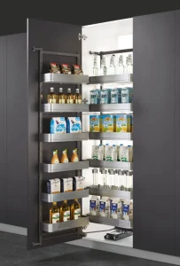 - Phần ray trượt giúp giá có thể lắp âm tủ.